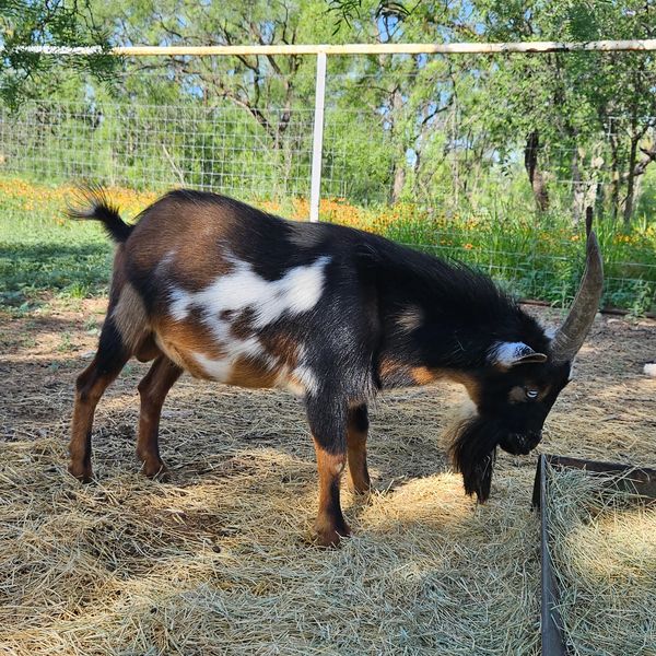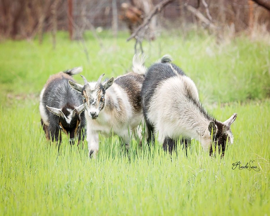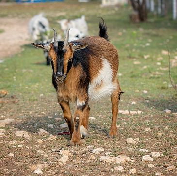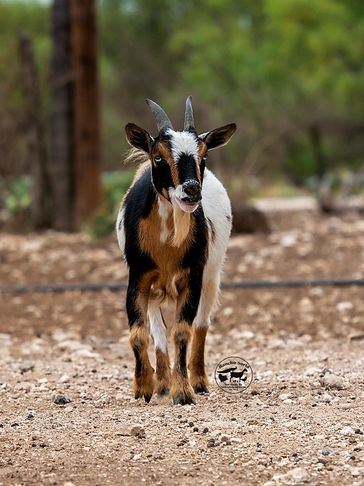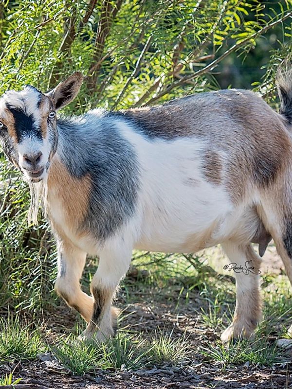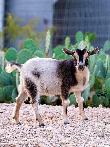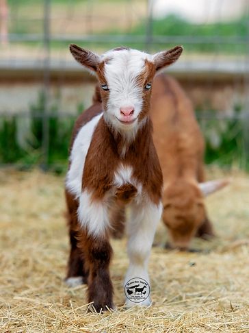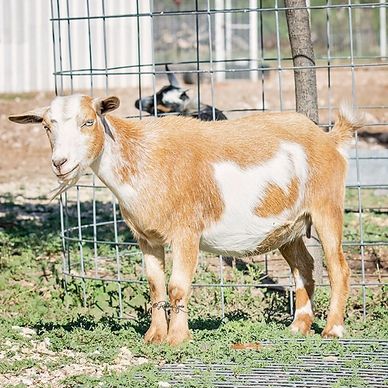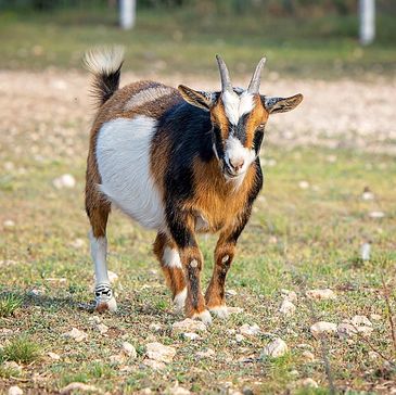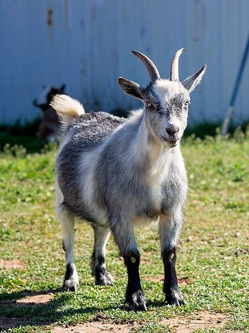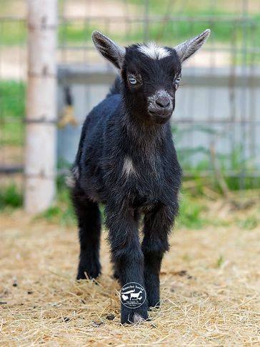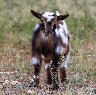 The Nigerian Dwarf Goat is a Dairy Goat that originates from West Africa. They are small goats their height is 17-22.5" in the Does and for the Males 19-23.5". Their milk is 6 to 10 percent higher in butterfat and higher in protein than milk from most dairy goat breeds.